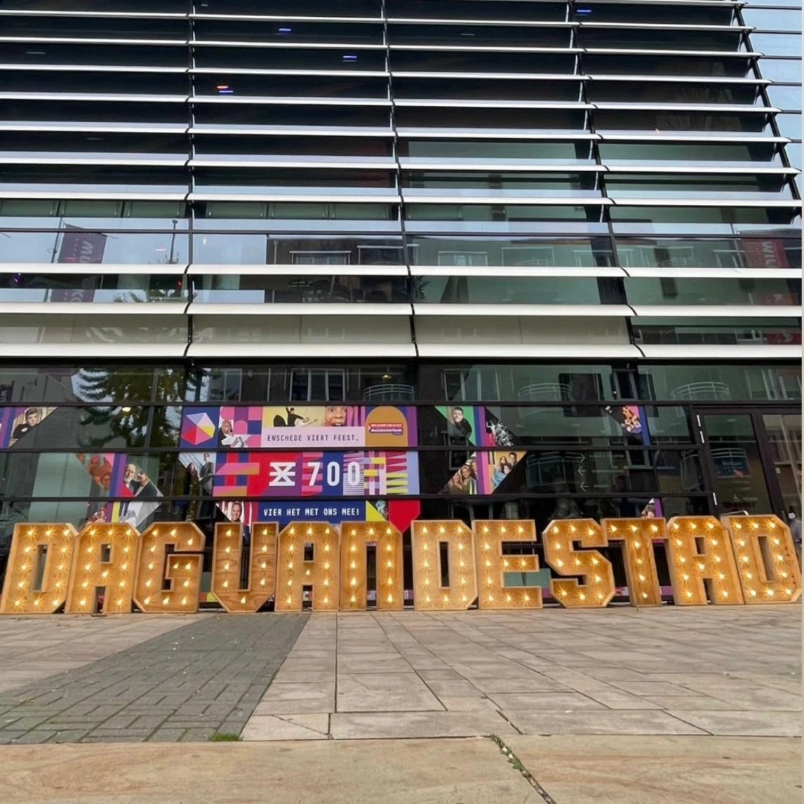 Voor VNG Connect mochten we meewerken aan Dag van de Stad, het jaarlijkse congres waar stedelijke vernieuwers samenkomen om te praten over grote maatschappelijke thema’s. Dit keer vond het evenement plaats in Enschede, dat vanwege haar 700-jarig bestaan fungeerde als gaststad. Over de binnenstad verspreid vonden inspirerende sessies en workshops plaats, onder andere in het Wilminktheater, Café Het Bolwerk, Metropool en het Muziekcentrum.
