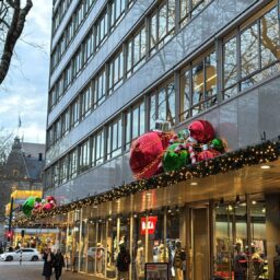 Ook aan de Coolsingel mochten we aan de slag. Hier hebben we de winterboodschap van Rotterdam Centrum een plek gegeven met XXL RWWWW letters (Rotterdamse Warme Winter Weken). Daarnaast vind je hier ook de inflatables met een mix van candycanes en kerstballen, natuurlijk mooi uitgelicht, aan de gevel bevestigd.