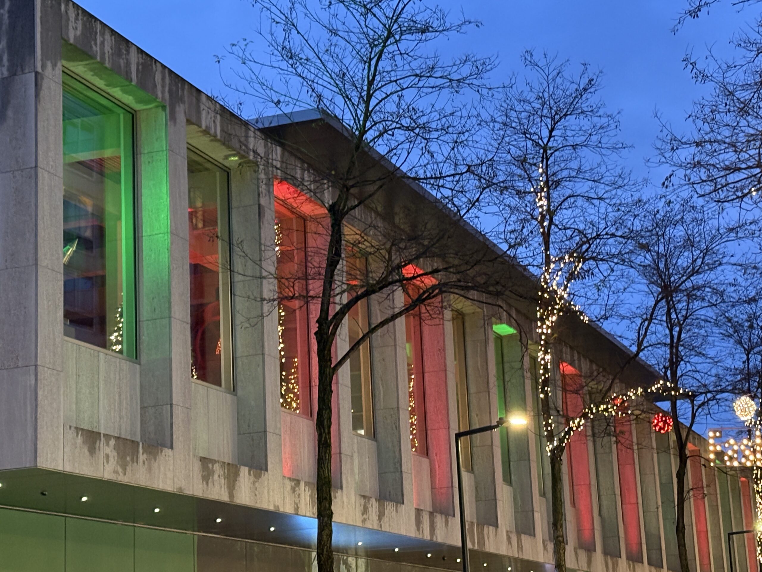 Ook aan de Coolsingel mochten we aan de slag. Hier hebben we de winterboodschap van Rotterdam Centrum een plek gegeven met XXL RWWWW letters (Rotterdamse Warme Winter Weken). Daarnaast vind je hier ook de inflatables met een mix van candycanes en kerstballen, natuurlijk mooi uitgelicht, aan de gevel bevestigd.